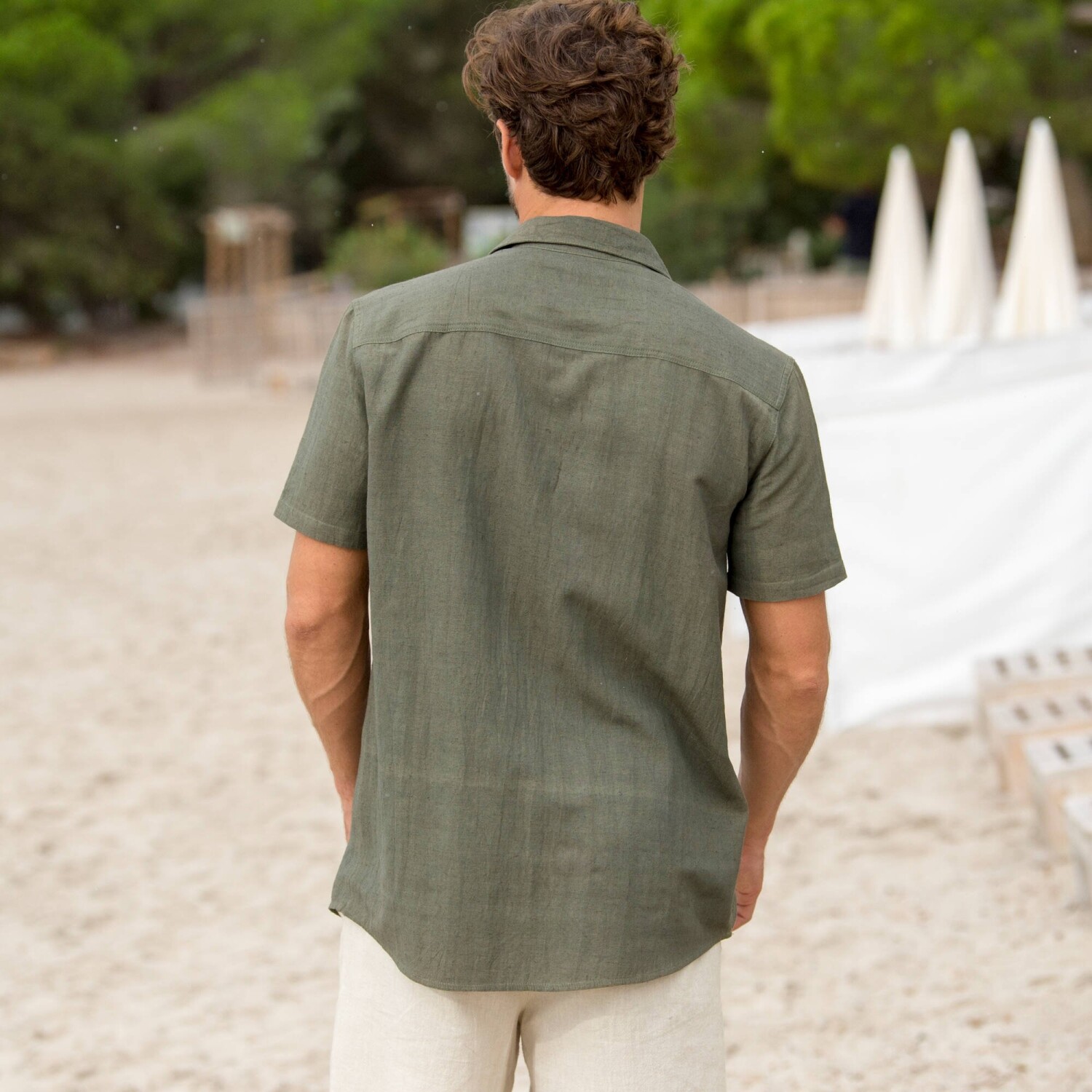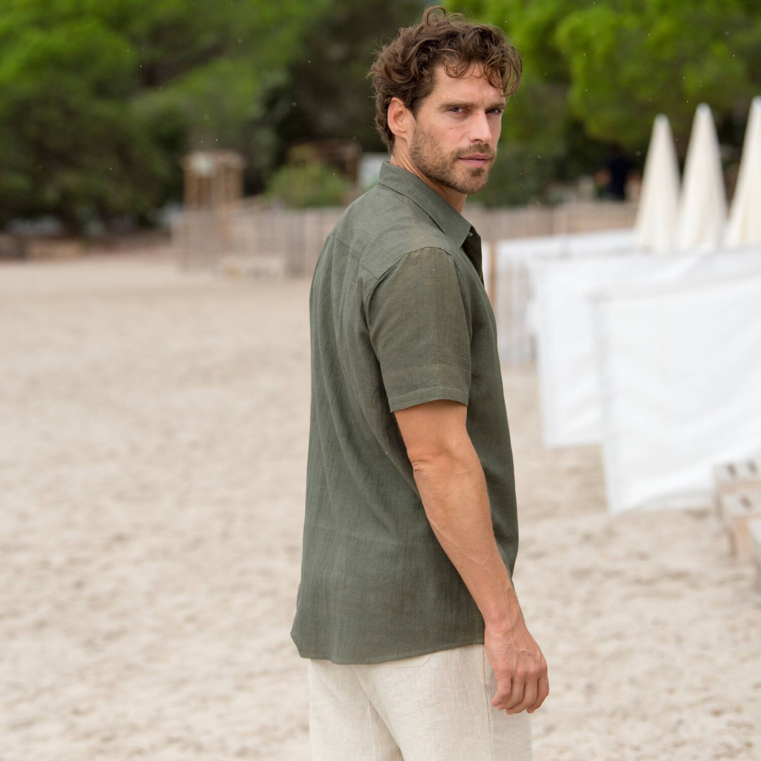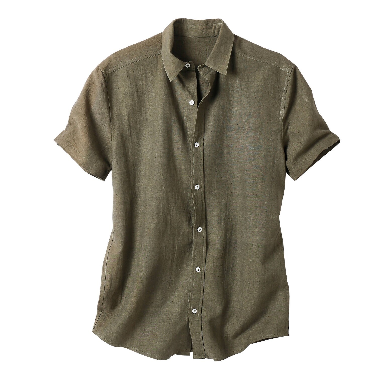 Košeľa zo zmesi bavlny a ľanu s krátkymi rukávmi