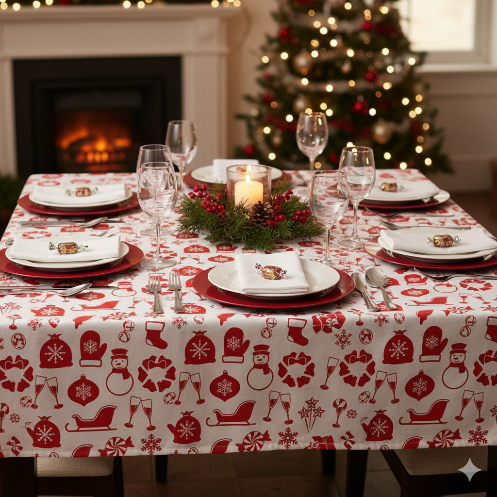 Obrus 140 x 120 cm v zimnom motíve sa hodí na sviatočný aj všedný stôl.
