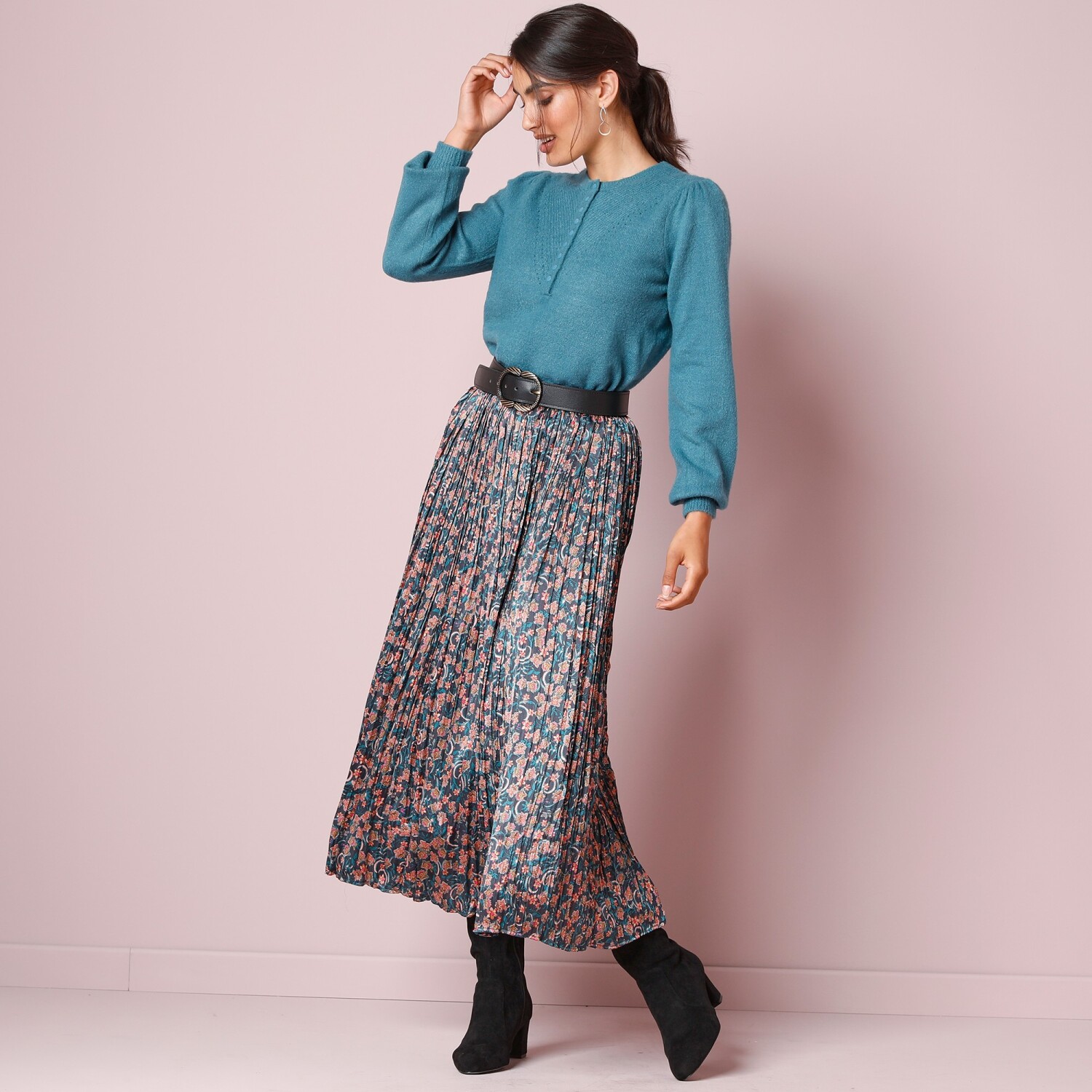 Džínsovú sukňu nemožno nemilovať. Ide o obľúbený kúsok, ktorý nikdy nevyjde z módy. Lichotivý, mierne rozšírený strih. Tvarovaný pás s pútkami. Zapínanie na zips a 1 gombík. 2 klinové vrecká. Vpredu prestrih do špičky. Zvýšený sed. 2 našité vrecká vzadu. Rovný spodný lem. Certifikát Made In Green značky OEKO-TEX®. Okrem overenia niekoľkých stoviek chemických látok, čím prispieva k vysokej bezpečnosti, toto označenie zaručuje ohľaduplné výrobné princípy a kontrolované spoločenské postupy. Možno prať v práčke.