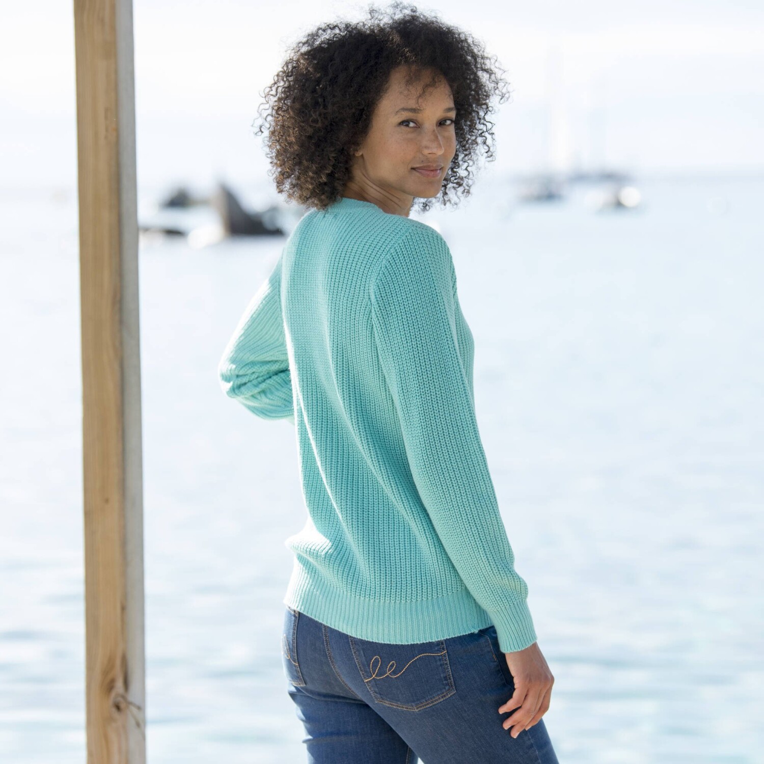 Pruhy a gombíky zlatej farby - pulóver s hladkým vzorom stavia na námorníckom štýle. Okrúhly výstrih. Vpredu na pleciach falošná gombíková léga. Dlhé nazbernaé rukávy. Nazberaný spodný lem. Vrúbkované zakončenie. Jemný mäkký úplet. Horizontálne pruhy. Možno prať v práčke.