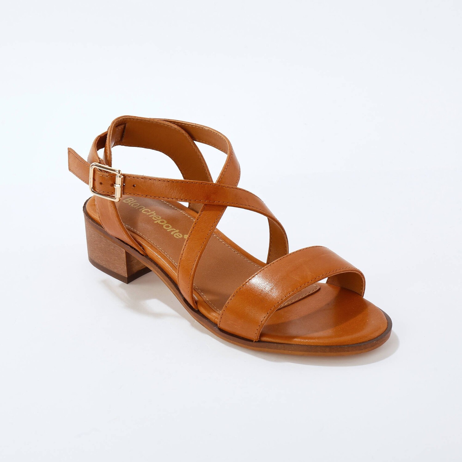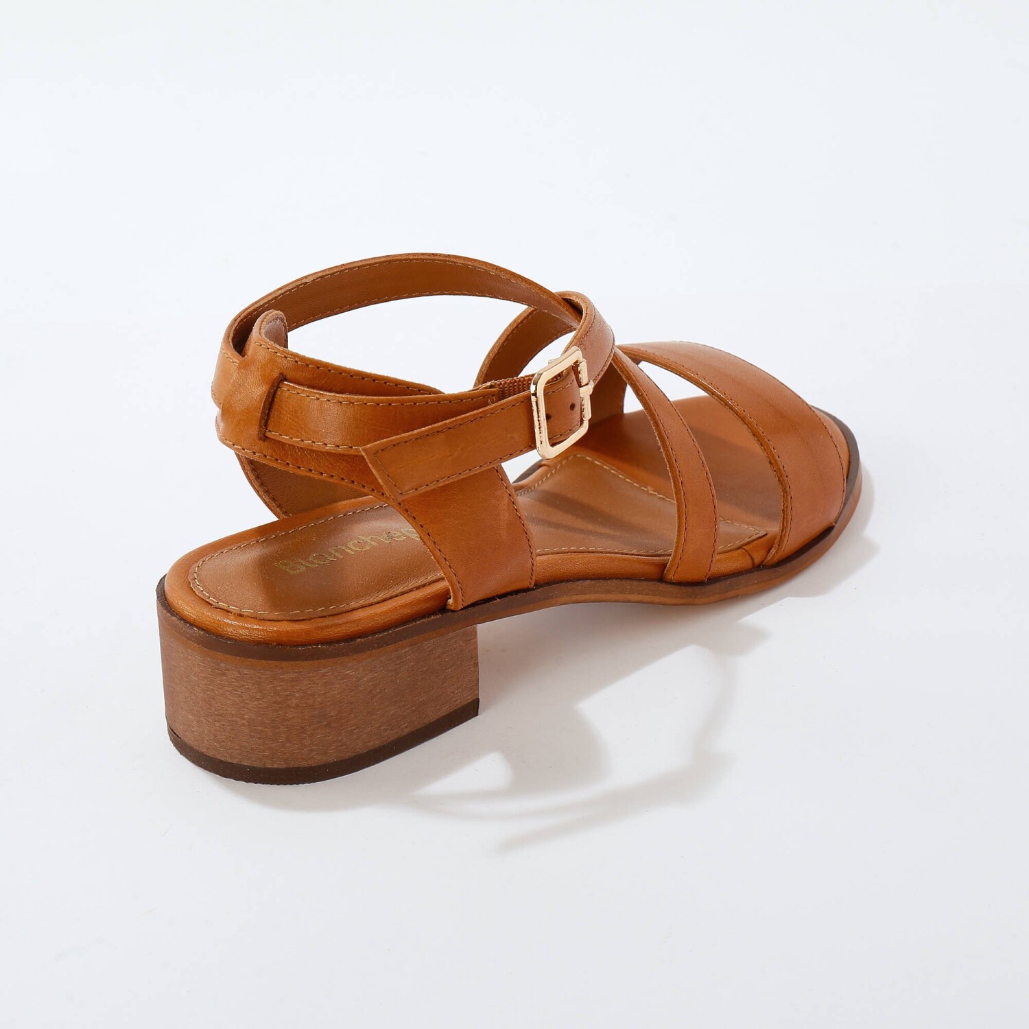 Elegantný čistý štýl a eco-friendly koža s certifikátom LWG, to sú originálne sandále s prekríženými remienkami. Z kvalitnej pravej kože. Na zvršku prekrížené remienky. Okolo členka remienok nastaviteľný pomocou spony zlatej farby a všitej gumy. Kožená stielka na penovom podklade. Široký podpätok má drevený vzhľad. Protišmyková tenká podrážka. Vyrobené z kože, ktorá pochádza z výrobní s certifikáciou Leather Working Group, ktorých záväzkom je znížiť dopad na životné prostredie nižšou spotrebou vody a energie. Vaše topánky pravidelne ošetrujte prípravkom na ochranu pred škvrnami a vlhkosťou.