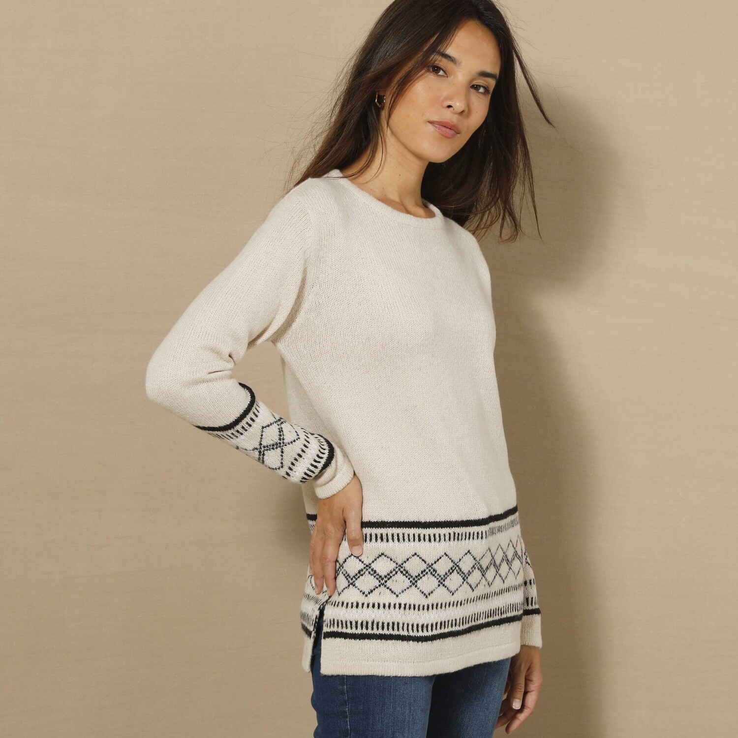 Tento pulóver patrí medzi letné hity! So štýlovými rukávmi po lakte a v žiarivej farbe, nenechajte si ho uniknúť. Z jemného úpletu s originálnym vzorom. Okrúhly výstrih. Balónové rukávy so zúženými manžetami a nazberaním na pleciach. Rovný spodný lem zúžený pomocou širokého vrúbkovaného lemu. Možno prať v práčke.