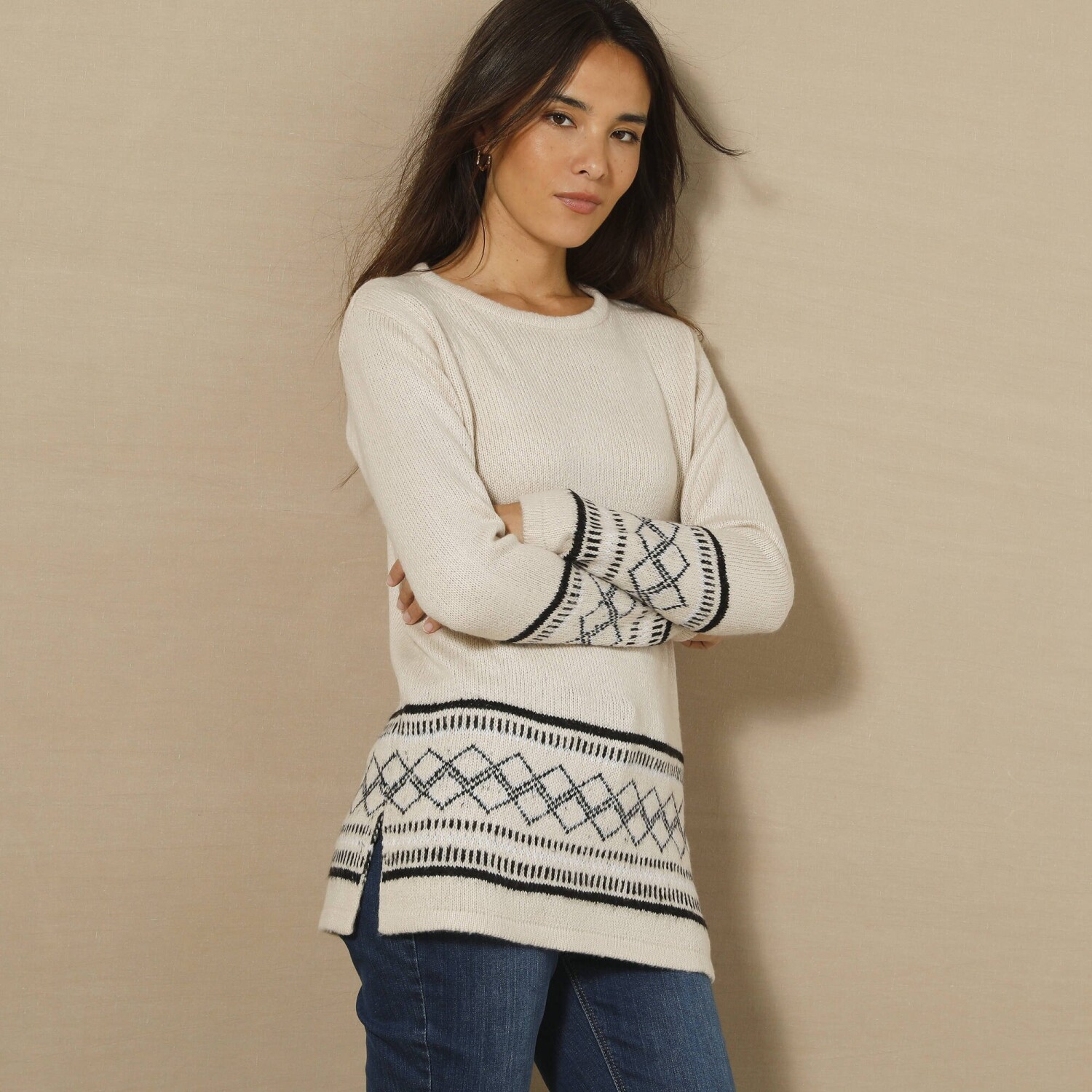 Pulóver na zapínanie s rukávmi po lakte